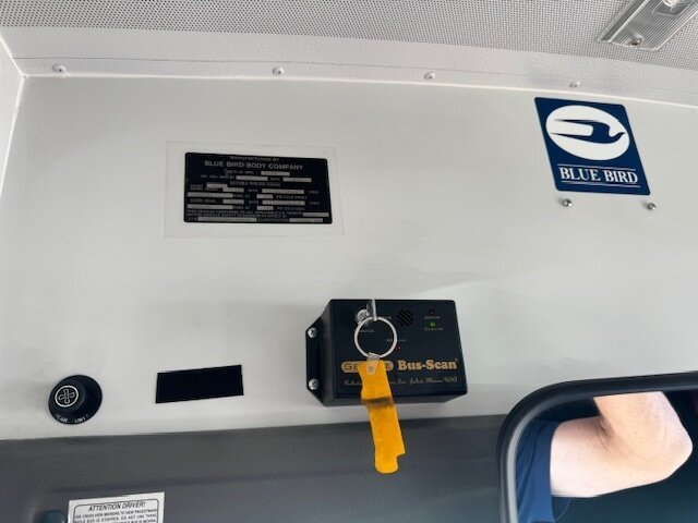 seats 14 in rear plus driver, comes with box of infant or small child seat restraints